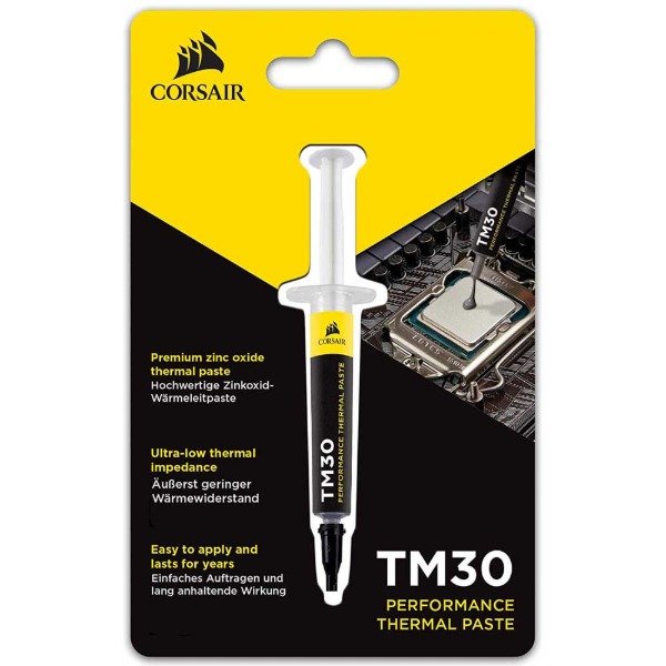 La Pasta Térmica Corsair TM30 Performance Thermal está formulada para ofrecer una transferencia de calor eficiente y confiable, ayudando a mantener bajas temperaturas en CPU y GPU. Su compuesto de alta conductividad térmica mejora el rendimiento del sistema y reduce el sobrecalentamiento. Presentación de 2.5 g, ideal para múltiples aplicaciones, con una textura fácil de aplicar y compatible con una amplia variedad de procesadores y disipadores. Una solución segura y duradera para optimizar la refrigeración de tu equipo.